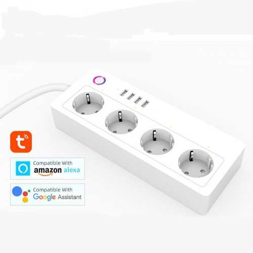 TUYA Έξυπνη υποδοχή Wi-Fi με 4 υποδοχές και 4 θύρες USB- Έκδοση Ε.Ε.