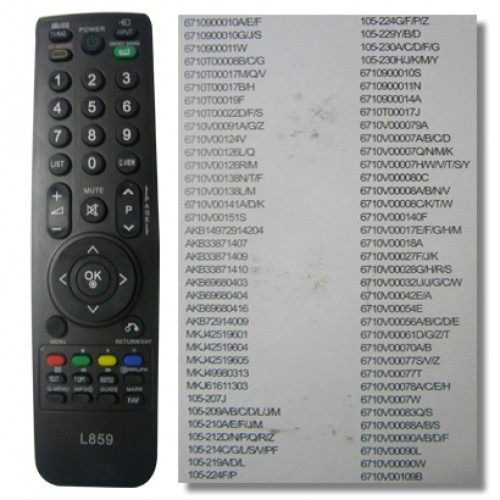 Πολυτηλεχειριστήριο universal που αποτελεί εξαιρετική επιλογή για αντικατάσταση χειριστηρίου LG.Μπορεί να λειτουργήσει με πολλά είδη τηλεοράσεων,παλιές ή καινούριες.Ιδανικό για χρήση σε LCD και LED τηλεοράσεις.Περιλαμβάνει όλες τις βασικές λειτουργίες.Πολύ εύκολη εγκατάσταση και άνετο στη χρήση.Ακτίνα λειτουργίας 8 μέτρων.Δέχεται 2 μπαταρίες τύπου ΑΑΑ. Ολόκληρη την λίστα συμβατότητας του RM-L859 με τα αντίστοιχα χειριστήρια LG θα την βρείτε εδώ Λίστα Συμβατότητας LG