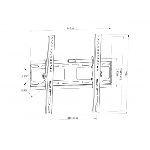 Μέγιστο βάρος φορτίου 45kgs. Aπόσταση από το τοίχο 62mm. Max Vesa: 400Χ400.
